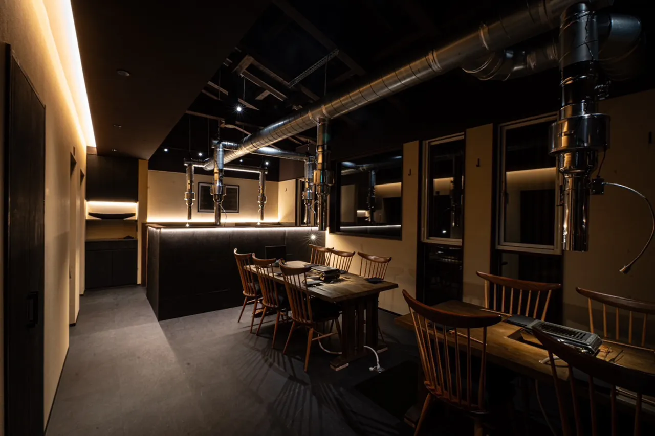 1階にはカウンターを設置。2階の各テーブルには仕切りがありプライベートな空間に。
